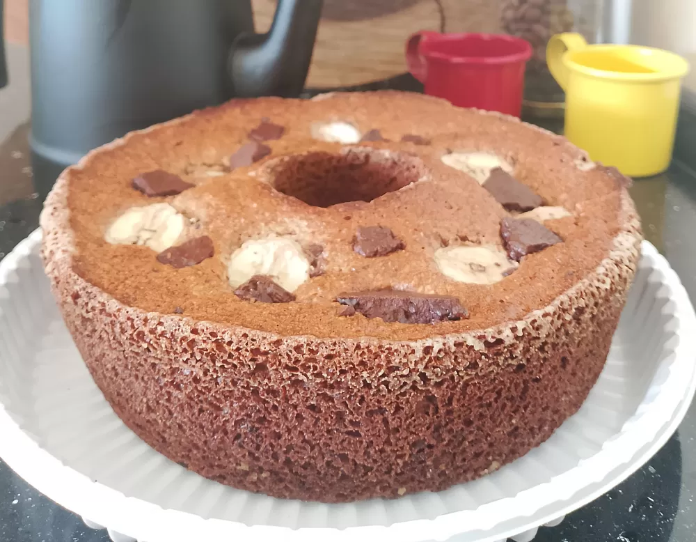 Massa feita com banana, aveia e uva passa. Finalizado com chocolate 70% cacau!